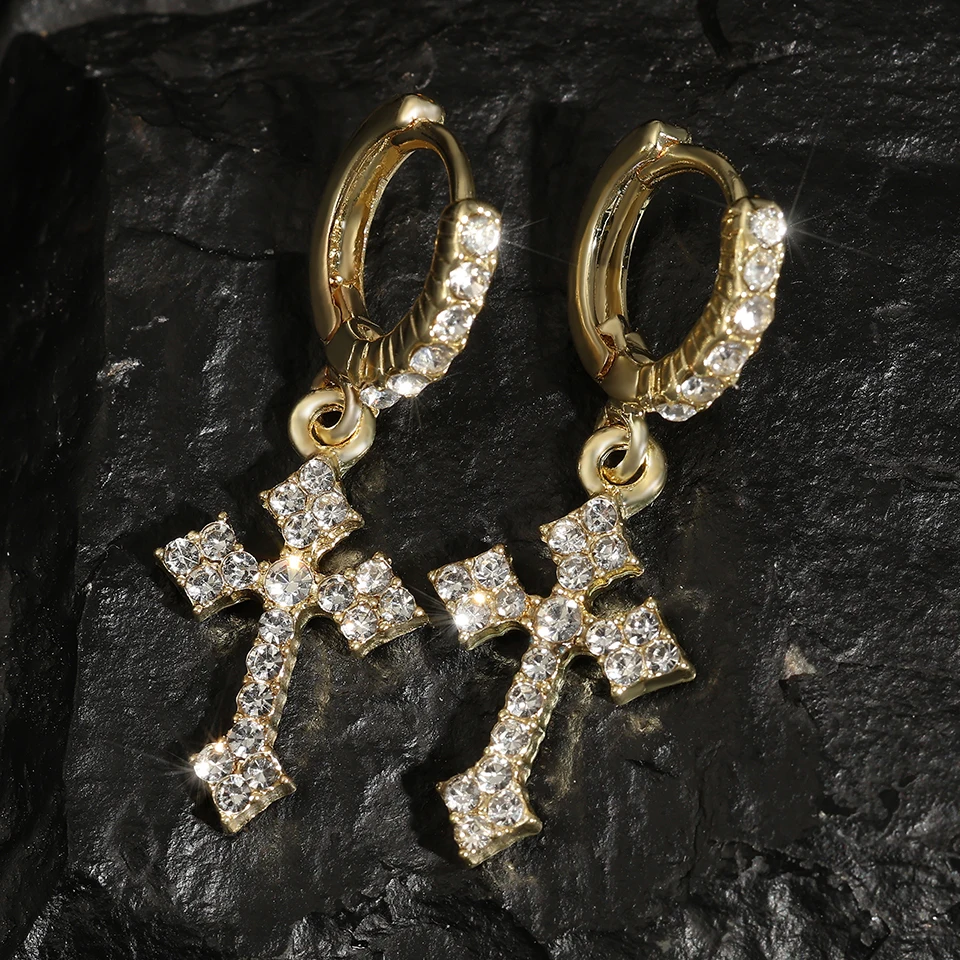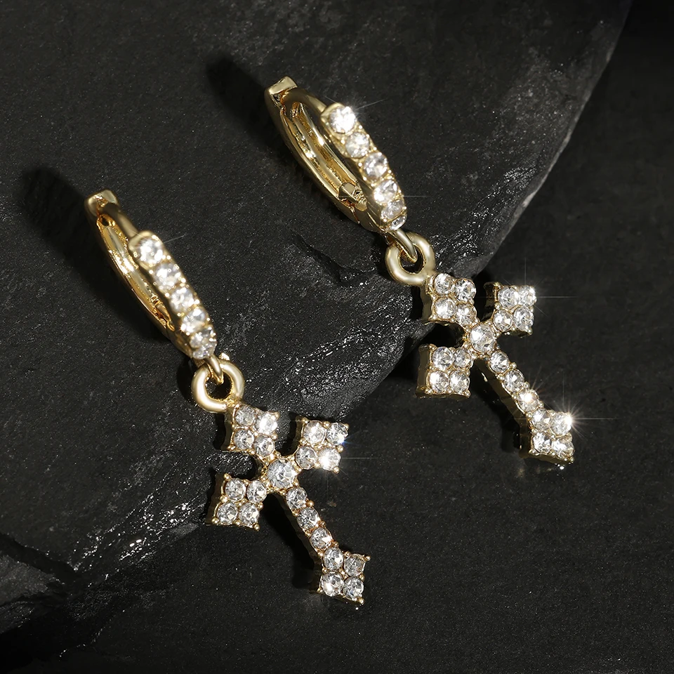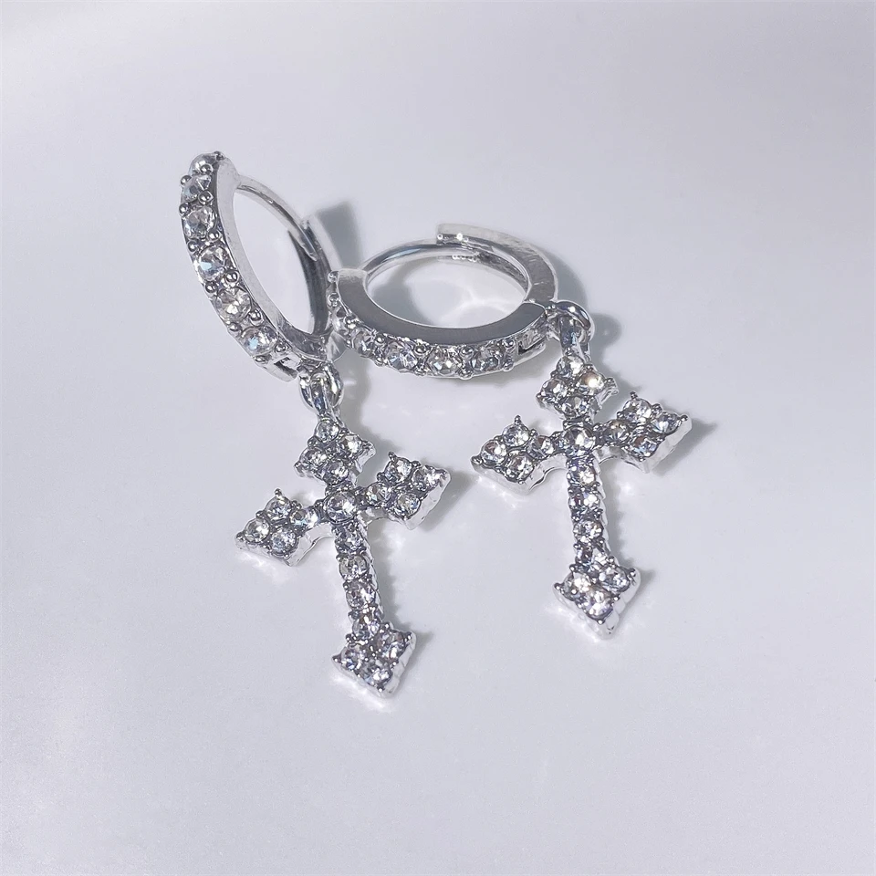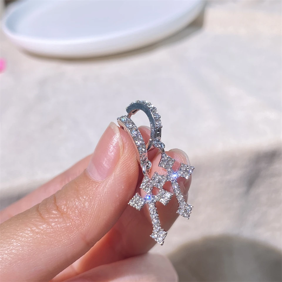 Fashion Luxury Zirconia Cross Dangle Earrings For Women Minimalist Personalized Ear Buckle Jewelry Accessory