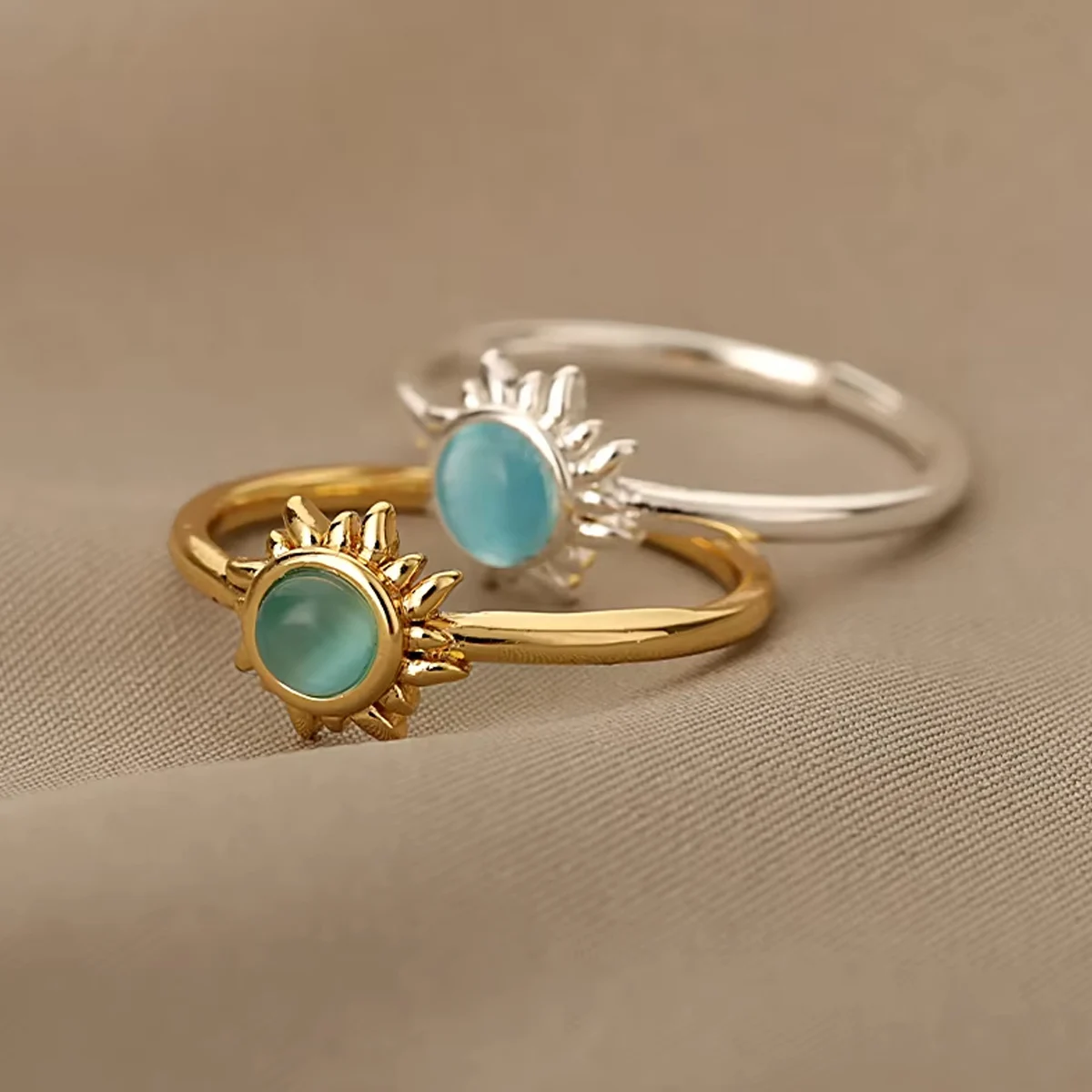 Name:Sun Opal Rings For Women Gold/Silver Color Couple Rings Aesthetic Engaement Wedding Ring Jewelry Party Gift