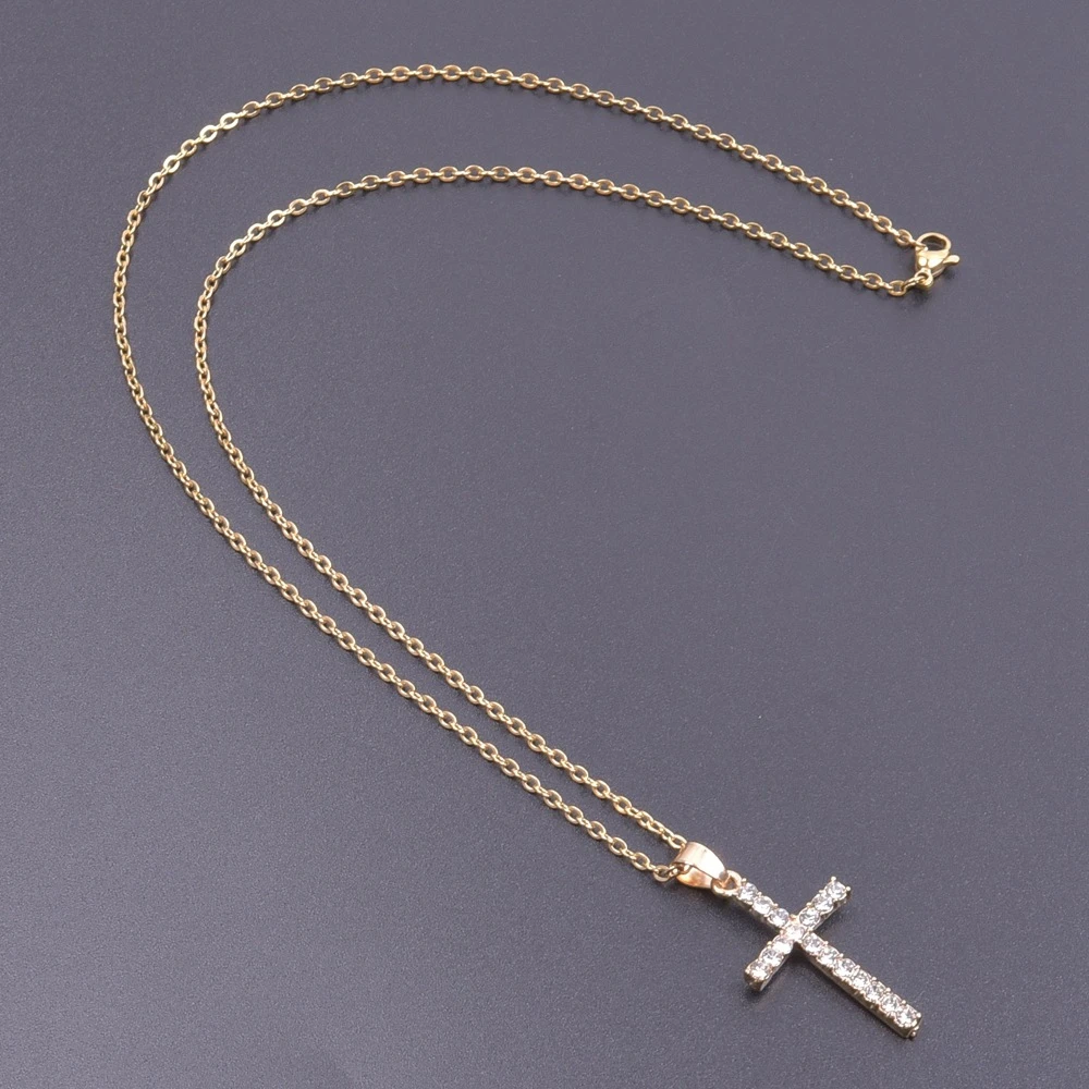 Women Necklace Jewelry Chain Fashion Cross With Rhinestone Pendant Necklace Stainless Steel Choke Ring Women Accessories New