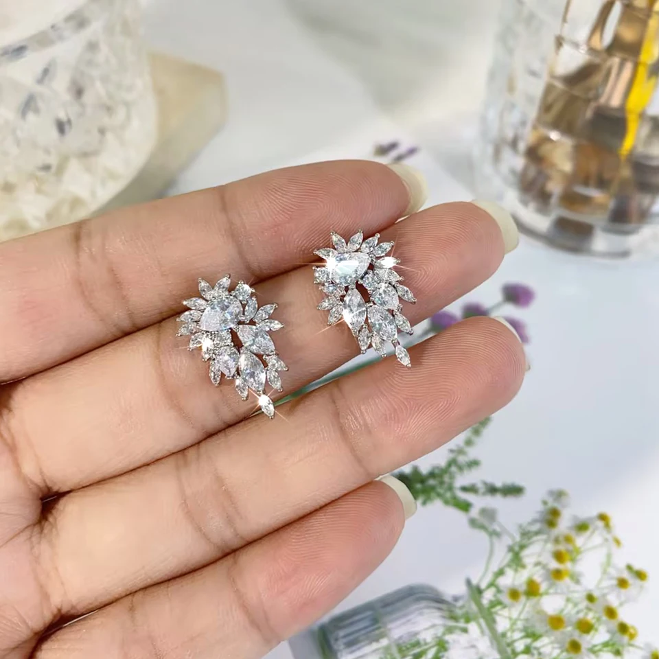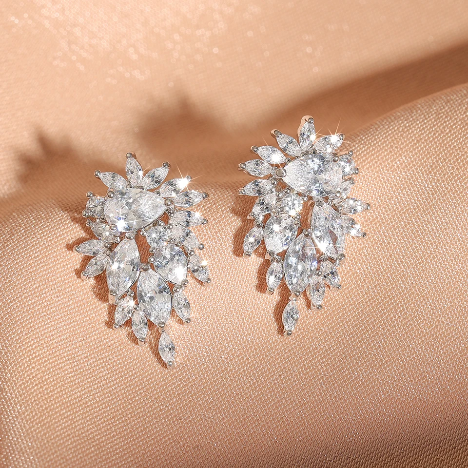 Yupsk Sparkling Cubic Zirconia Stud Earrings Gorgeous Female Wedding Party Fashion Ear Piercing Accessories for Women